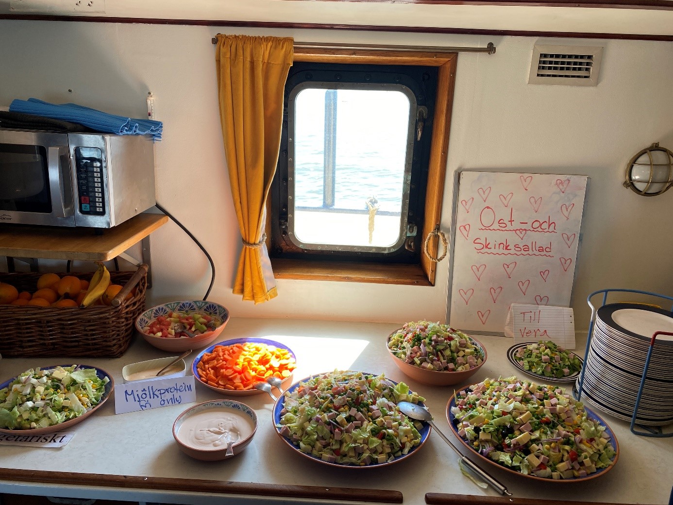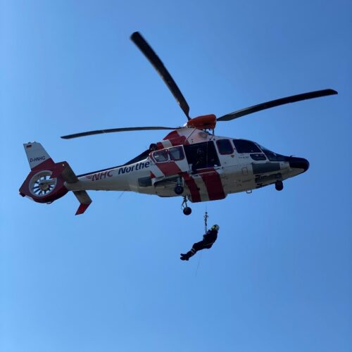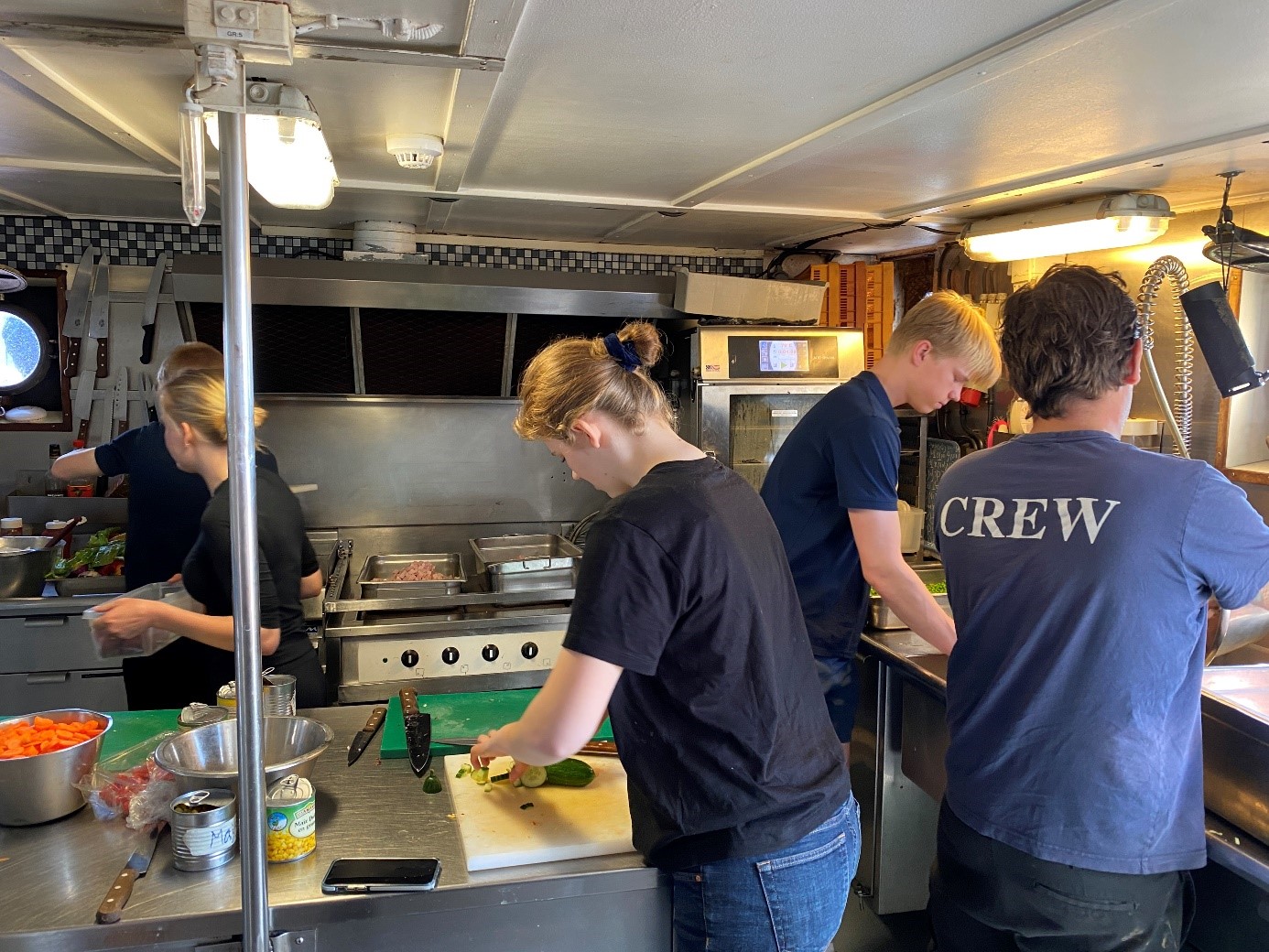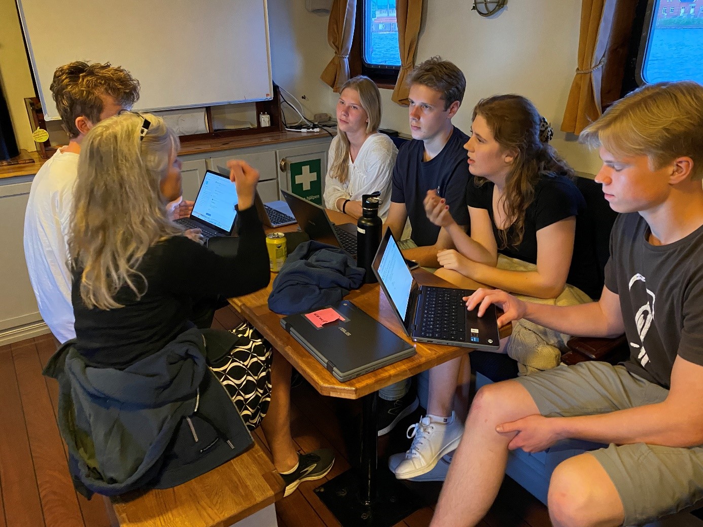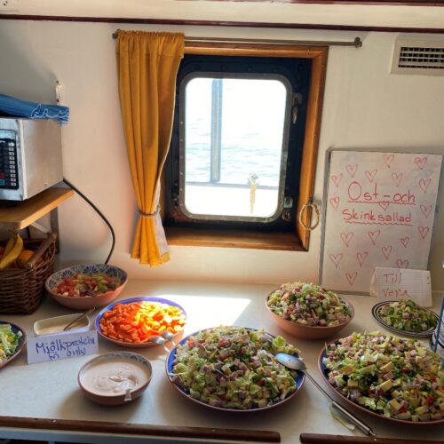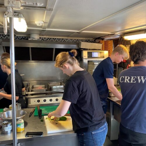 Detta är läraren Osvaldo här vid tangentbordet. Det är andra och sista gången jag skriver logg från Älva för snart är det dags för mig att färdas tillbaka hem till Sverige, nämligen på måndag den 20 maj. Det är samma dag som jag får äran att fylla år här på fartyget, och det kommer vi att fira med en rolig musikalisk aktivitet kvällen innan, dvs imorgon kväll. Min tidiga lördagsmorgon började idag med en hälsning på de tre tappra sjövaktselever och Sören som befann sig på bryggan och håll utkik på andra fartyg i området. I besättningens perspektiv har vi haft ett lugnt väder med vågor på max 1,5 meter. Efter frukost, följd av daglig städning och inspektion närmade vi oss till Tysklands kust efter tre dagar till sjöss sedan vi lämnade Brügge och Belgiens fastland. Alla verkade vara glada när vi äntligen fick täckning igen på mobiler, då bristen på täckning gav oss verkligen hemlängtan till familj och vänner. Imorgon blir det halvtidsredovisning om seglingsprojektet i Företagsekonomi Specialisering på båten samt enkätinsamlingar och intervjuer ute på Rendsburg, så under dagen har eleverna suttit och putsat sina presentationer och enkäter, alternativ deltagit i förarintygslektioner med överstyrman Sören. Till lunch bjöd byssan på en somrig ost- och skinksallad som passade bra med det varma och soliga vädret. Resan till Brunsbüttel gick med bra ström vilket hjälpte att spara på bränsle. Vid 12-tiden slussades vi in i Kielkanalen och det var härlig att se den vackra gröna omgivningen. Dagens höjdpunkt var när vi navigerade vid Nord-Ostsee-Wanderweg och fick besök av en sjöräddningshelikopter från Northern Rescue 01 som gjorde sina övningar på vårt fartyg. Alla ombord passade på att ta bilder och filma helikoptern medan vissa var så pass modiga för att ta selfier med räddningsmän. Älva har under dagen färdats smidigt fram till Rendsburg där vi välkomnade nykomlingarna Måns och Helena ombord på kvällen. Arbetsdagen avslutades med en välbehövlig middag. I skrivande stund har alla eleverna med besättningen gått iland för att handla och fylla på skafferiet. Tillbaka till fartyget blir det kvällsumgänge, mer arbete med förberedelse av projektpresentationer och inte minst mycket skratt. Senare blir det läggdags for största delen av klassen medan vissa andra går på hamnvakt denna ljumma kväll. För FE22 har denna andra seglingsvecka gått på bästa tänkbara sätt. Trots att vissa elever har visat en aning inslag av trötthet så är stämningen god och humöret mestadels på topp. Min kollega Sofia som har varit en strålande pedagog och stöd vid min sida från start av resan fortsätter sitt jobb på Älva men som styrman. Då lämnar vi över läraruppdraget till mentorer Måns och Helena resten av seglingen.