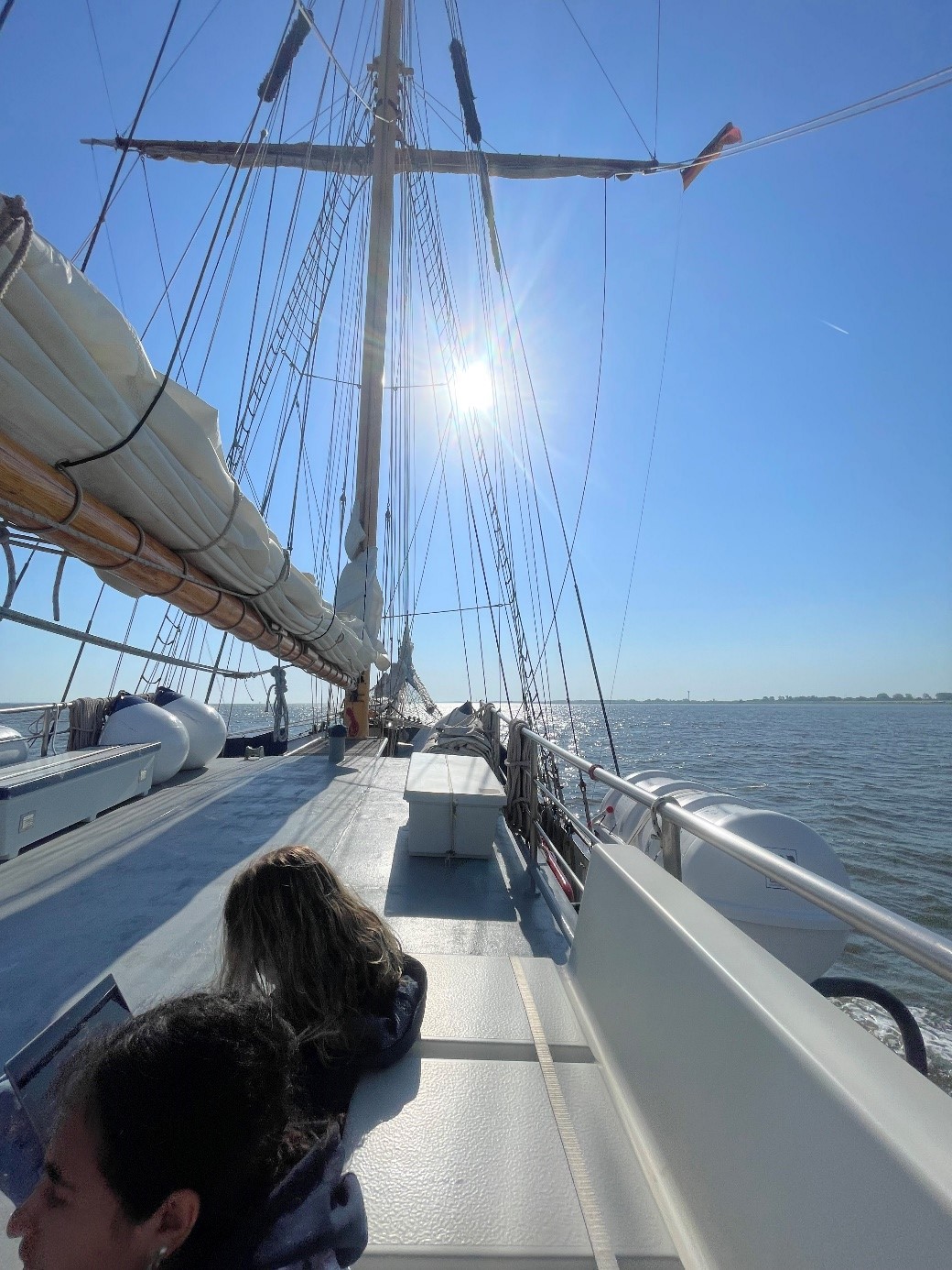 Idag slussade vi genom Brunsbüttel vidare mot Rendsburg. Medan några av oss var i byssan och städade så var resten av klassen liggande på däck och solade. Eftersom vi har vår halvtidsredovisning i Företagsekonomi Specialisering imorgon så förberedder vi oss i timmar. Vi hade lektion med Sören, där vi lärde oss mer om mörknavigering. Sören gick igenom sektorfyrar, även kallat ledfyrar W.R.G., vilket står för White, Red och Green. Det används för att undvika grund när man kör i mörker. Idag blir loggen inte särskilt utvecklad, då det är röda dagar imorgon och på måndag i Tyskland. Därför är vi alla i stort behov av att gå ut på stan, kolla runt och köpa snacks.