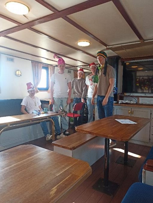Dagen började väldigt mycket tidigare än vanligt, redan vid 06:00 var det väckning eftersom avgång mot Visby redan var vid 7:30 från Gdansk. Avgången gick som smort och vädret var fantastiskt, framför allt inga vågor, yippie! Sedan hade vi den dagliga morgonstädningen på skeppet. Därefter en fantastisk fisklunch och sen en lektion om meteorologi för våra framtida förarbevis och kustskepparbevis. Vi lärde oss om hur hög- och lågtryck påverkar vädret och vad väder egentligen är av Tina och biträdande rektor Henrik som är på besök. Efter lektionen hissade vi nästan alla segel för att komma så fort fram till Gotland som möjligt. Sen var det dags att klä sig väldigt färgglatt för det var kalasdags för Victoria och Orchidée som har fyllt 18 hela år!!! Kalaset erbjöd en god middag med färsbiffar och fruktsallad till efterrätt, även en intensiv skattjakt som satte alla på hygget då det var först till kvarn. Sen hände det alla fruktade, DUSCHFÖRBJUD!! Men som tur var upphörde det innan Ceasar ens hann sätta upp sina fina duschförbjud-lappar på alla duschar som han hade gjort. (Det var ett litet elfel på gråvattenpumpen som vår duktiga maskinistmatros Justine snabbt fixade.) Sen var det den dagliga kvällsfilmen som sattes på tv i salongen, det blev en skräckis som heter Seven (den var bara Henrik och Ceasar som vågade kolla). Sen var det dags att sussa så gott i hytterna för imorgon är vi äntligen i Sverige igen!!