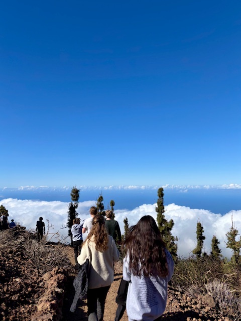 Dagen startade som vanligt med frukost och därefter städning. Efter lektioner och lunch var det dags för utflykt till vulkanen Teide. Att göra en utflykt på Teneriffa var en del av vaktlag fyras ansvar som en del av gymnasiearbetet. Guiden Dario hämtade upp oss med buss vid kajen klockan 14 och tog oss på en guidad tur på 6 timmar. Under turen berättade han intressant fakta om Teneriffa och framförallt Teide som var resans höjdpunkt. Vi stannade även på fina utsiktsplatser för att ta bilder. Först tog vi en timmes vandring runt en närliggande monovulkan med utsikt över molnen, vilket var väldigt häftigt. Sedan stannade vi på ett ställe där vi kunde äta och ta en välbehövd toapaus. Till lunch blev det en kulinarisk upplevelse i form av baguetter med smaskigt innehåll och en juice. Efter detta åkte vi högre upp och tog en timmes vandring på ett ställe som liknade mars otroligt mycket, vilket alla gillade. Det var även världens största fält med obsidianstenar. Sedan blev det dags att åka tillbaka men vi tog ett sista stopp för att kolla på den fina solnedgången. Det var otroligt fint, dock fick vi lite problem med bussen då det var så många bilar på utsiktsplatsen så vi behövde backa ner en bit. Men det löste sig till slut som tur och vi kom hem tryggt till hamnen klockan 20. God natt hoppas att ni har haft en lika ”iconic” dag!