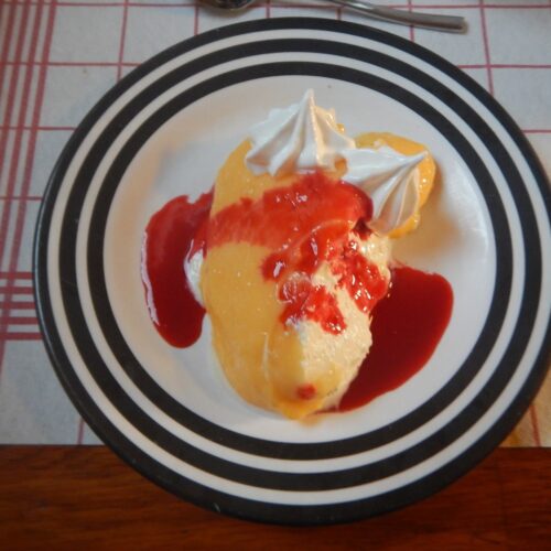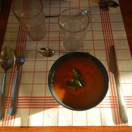 Medan den större delen av klassen hade hjälpt med bärgning av segel + förtöjning hade vaktlag 4 kämpat hårt för att få till den efterlängtade middagen. Temat var historiska figurer där alla på båten klätt ut sig, man kunde se figurer som Björn Borg, Abraham Lincoln, Julius Ceasar och Pippi Långstrump. Den stora tre rätters middagen börjades med en förrätt av Gazpacho med en klick mojo rojo sås (se bild nedan) 😊. När varmrätten kom in introducerades vi till två olika tacos med egengjorda tortillas. De bra betygen flödade från hela klassen. Till efterrätt blev det en Citron Cheesecake med lemon curd och hallonsås. Tyvärr hade kexbotten frysit fast men efterrätten smakade riktigt gott ändå (Bild nedan) 😊.